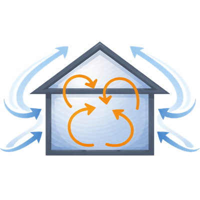 Var teikt, ka ēka „elpo” ar tās ventilācijas sistēmu. Nekontrolēta gaisa noplūde caur konstrukcijām ir jālikvidē projektēšanas un būvēšanas stadijā.